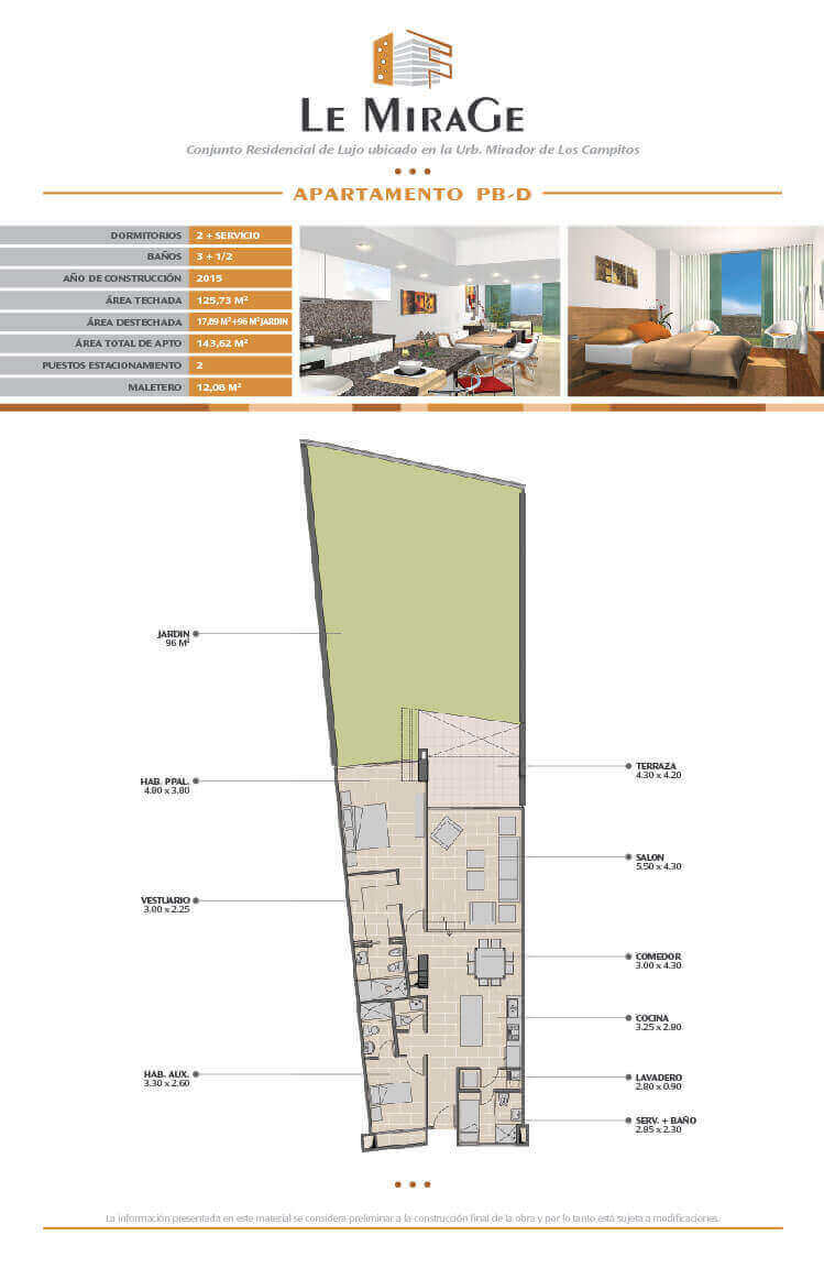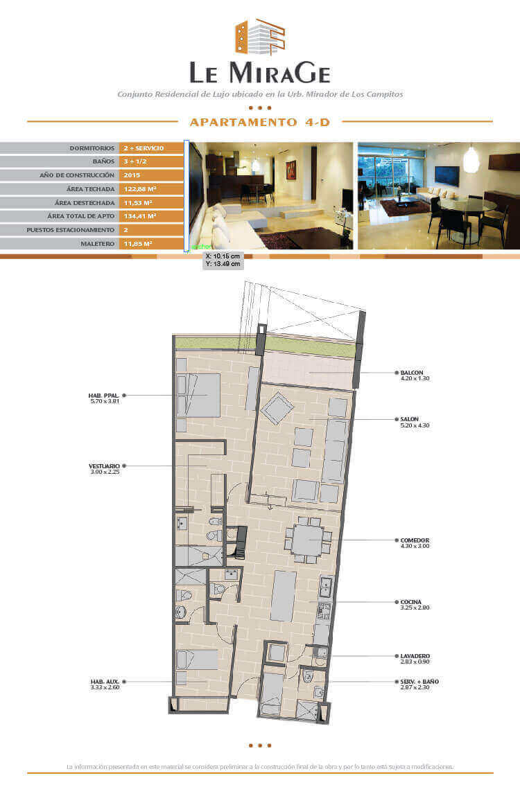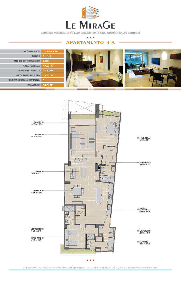 Le Mirage se encuentra ubicado en la urbanización Mirador de Los Campitos, en el Sur Este de Caracas. Es un edificio residencial de lujo que aloja sólo 29 apartamentos. Por su ubicación privilegiada sobre el valle de Caracas, cuenta con una hermosa vista y goza de un exclusivo ambiente de tranquilidad.
