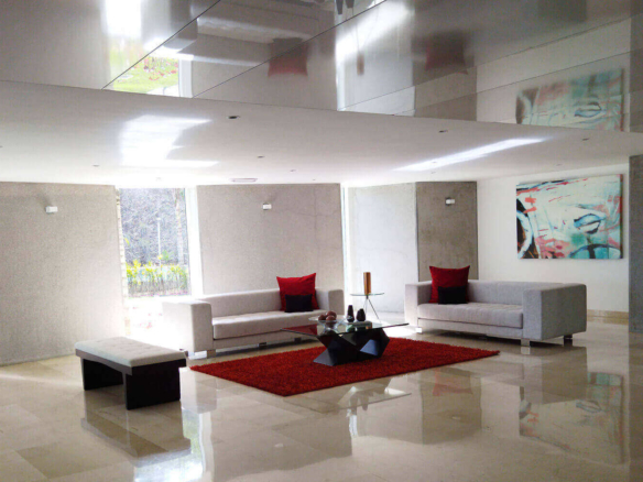 Cuenta con amplios espacios comunes: sala de fiestas, parrillera, jardines, áreas verdes y piscina. La conformación de la planta abanicada permite que los apartamentos gocen de una hermosa vista y por su concepción estructural, las plantas están conformadas por 4 apartamentos centrales y 2 de esquina. Además de los 91 puestos, se cuenta con oficina de condominio y maleteros .
